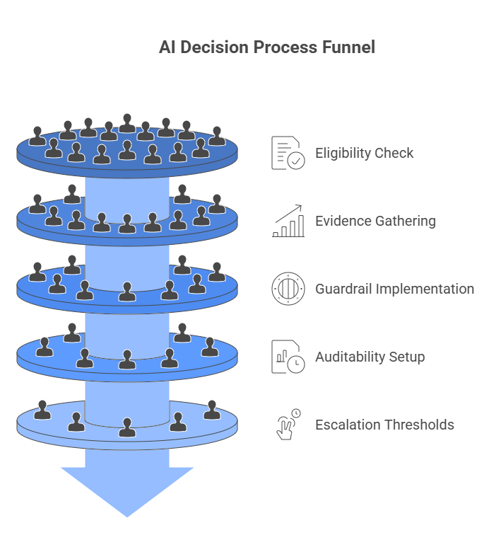 Gate 1 Eligibility: the use case must be low criticality or high tolerance for error at the start, with well defined success labels.