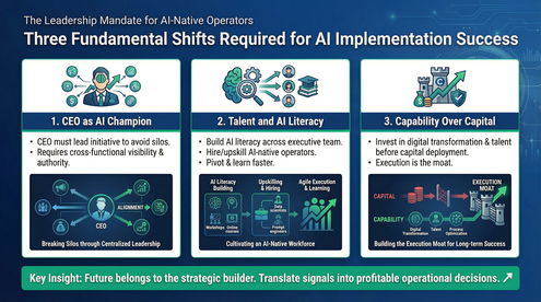 The shift from AI experimentation to operational reality requires the CEO to lead the initiative. Relegating AI adoption to an IT department is a surefire way for the initiative to fail, leading to silos and a loss of business context. The CEO possesses the cross-functional visibility, resource allocation authority, and clear view of top priorities needed to embed this capability across the organization.
