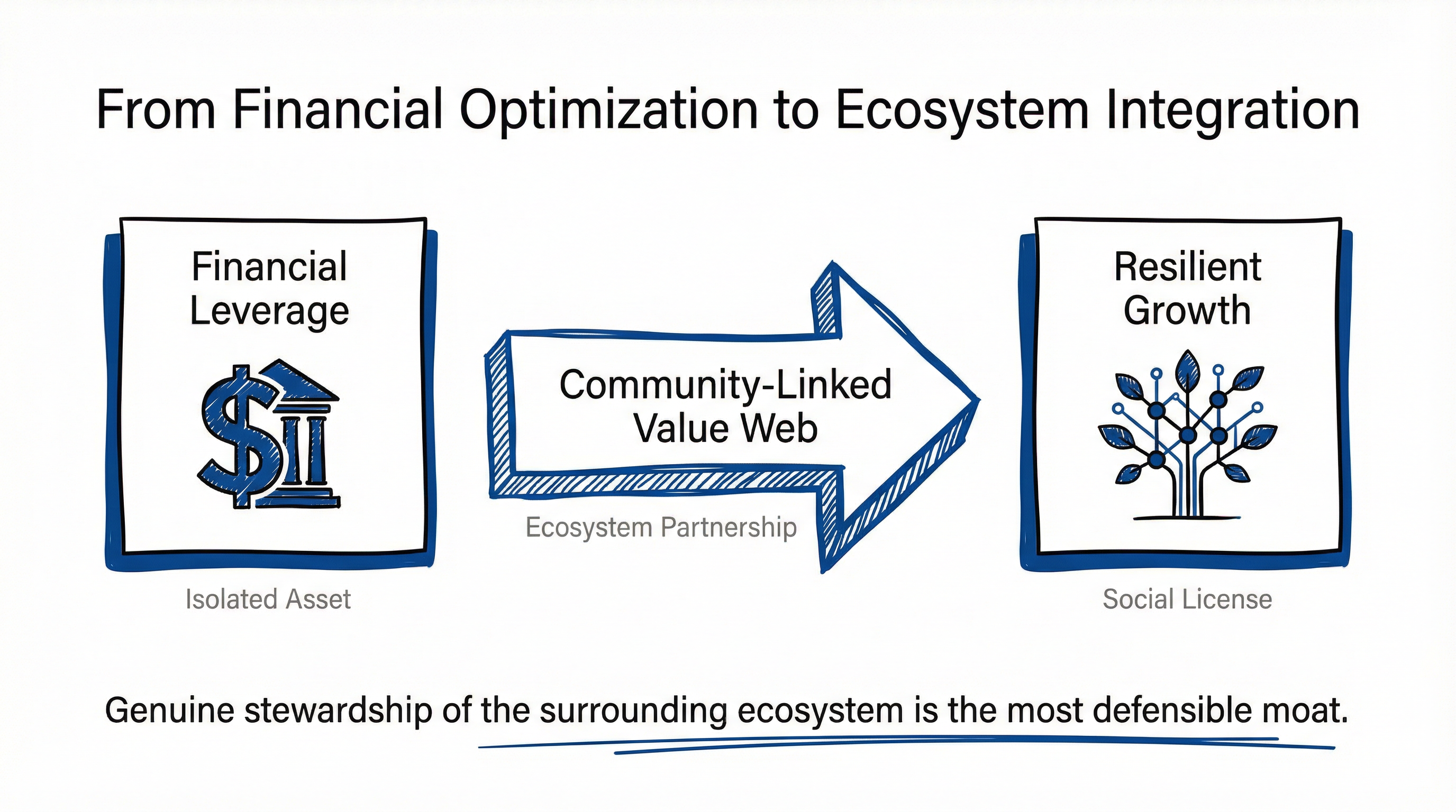 The shift toward Community-Linked Value Webs recognizes that profitability cannot be sustained in a vacuum. The firm that builds shared value through collaboration and local investment ultimately builds a stronger, more resilient asset that is poised for long-term outperformance. In an era where competitive advantage is scarce, genuine stewardship of the surrounding ecosystem is the most defensible kind of moat a private equity firm can build.