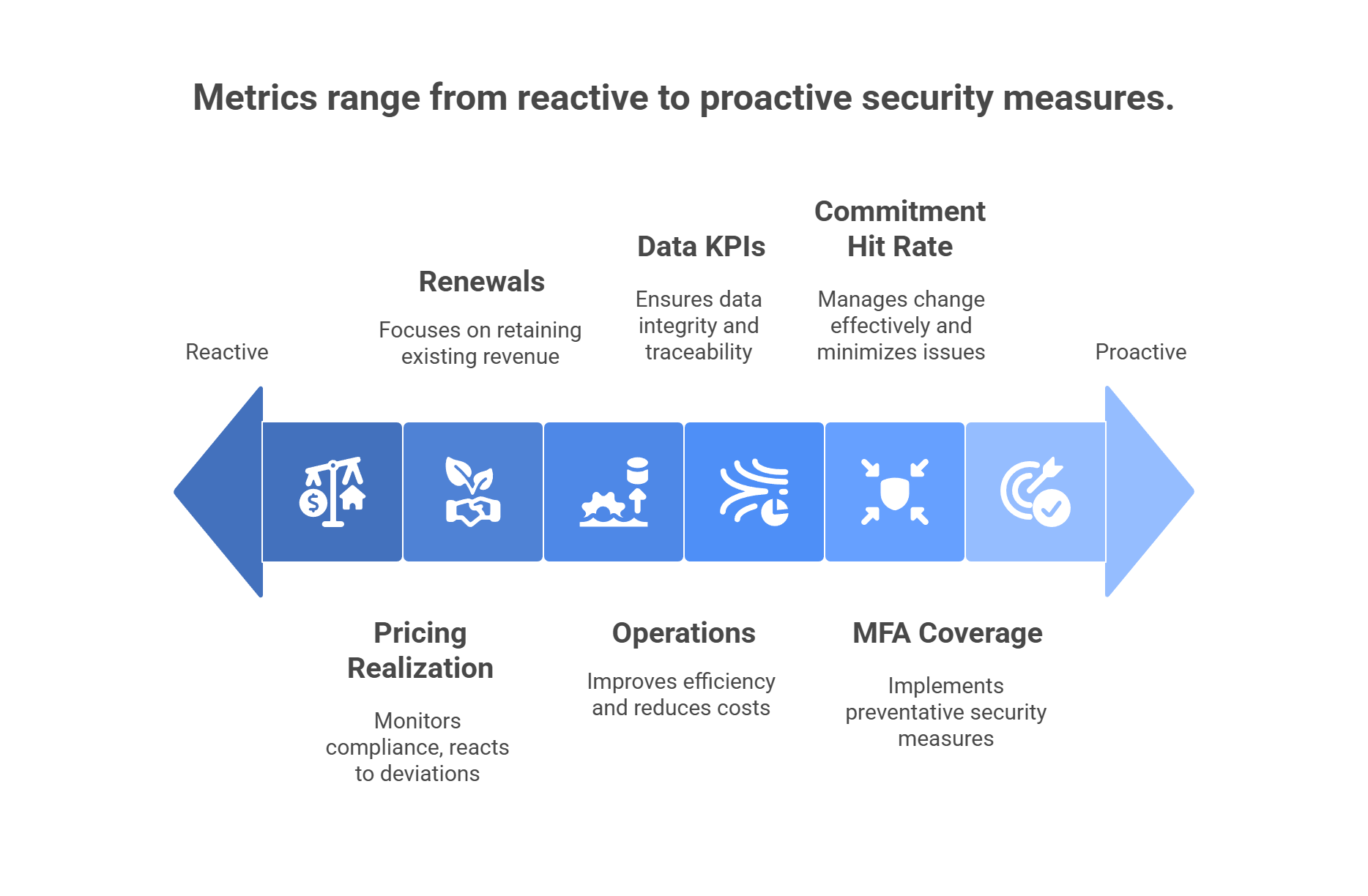Renewal and expansion metrics: logo retention, net revenue retention, discount compliance.