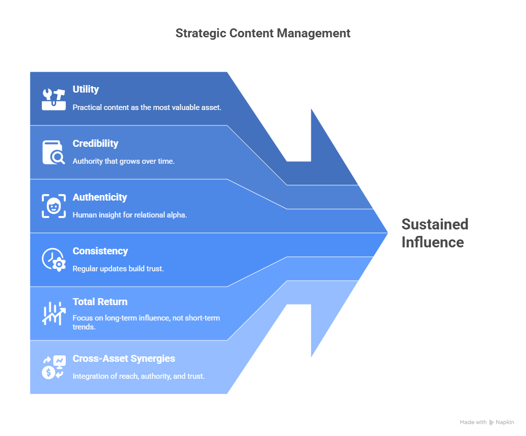 Traditional corporate comms = single broadcast playbook. Modern influence = diversified content portfolio.
