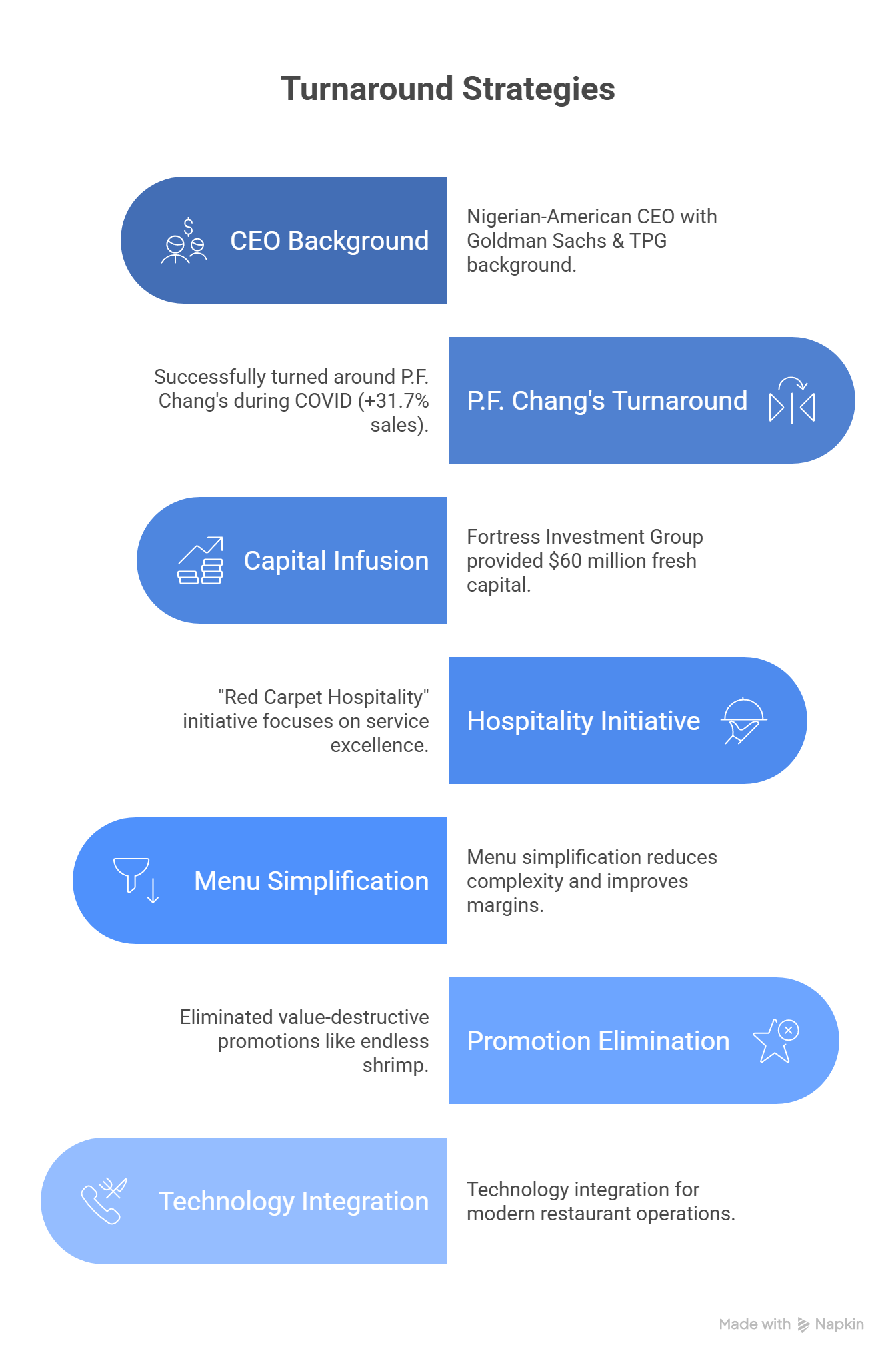 But most importantly: proven results in similar circumstances. The P.F. Chang's turnaround generated $1 billion in revenue with 31.7% sales growth during one of the most challenging periods in restaurant history.